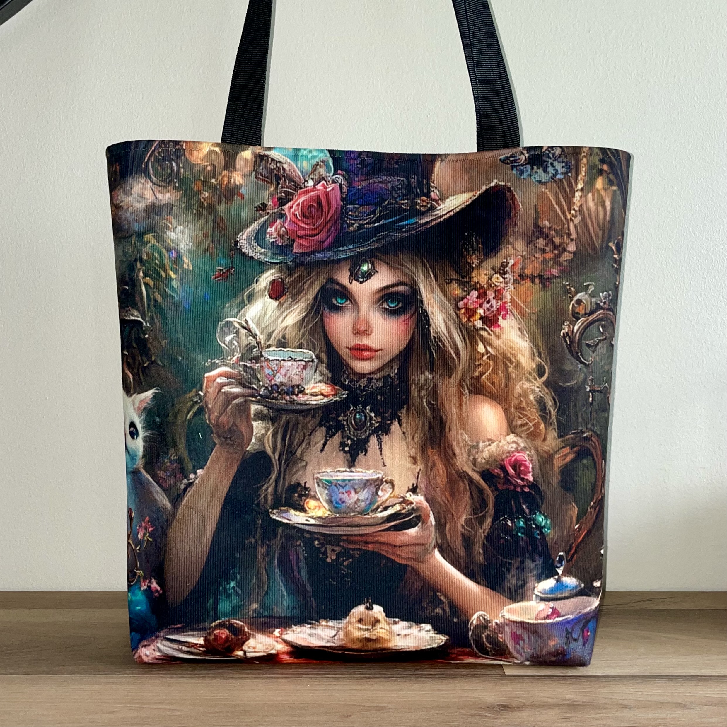 – La base du sac est en similicuir noir