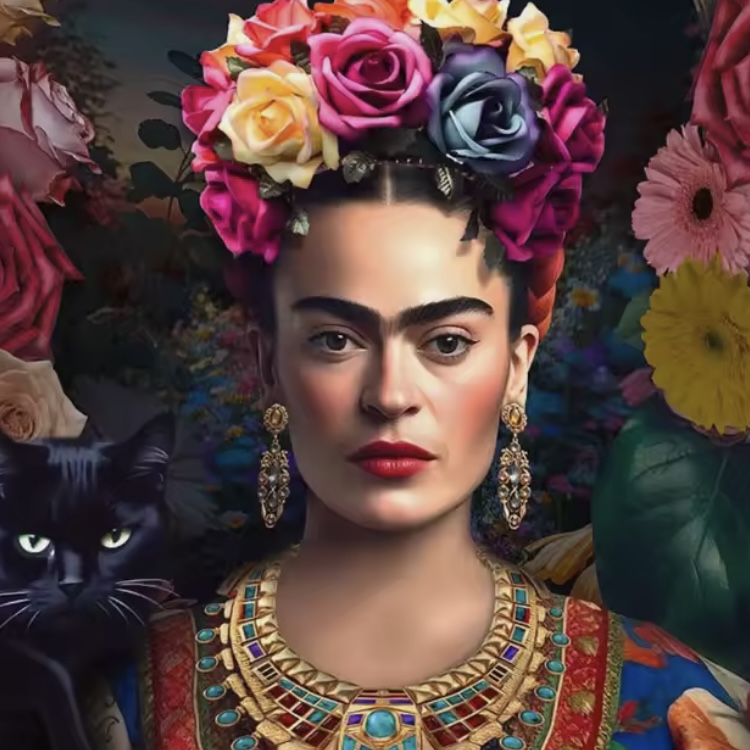 – la face avant est un recouverte d’un panneauFrida Kahlo