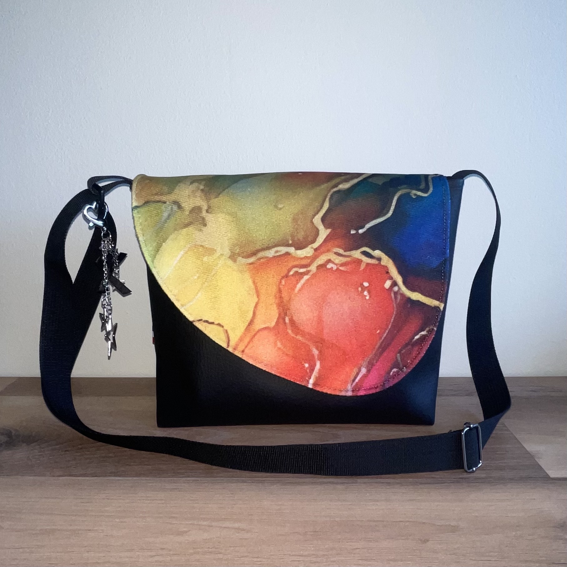 – Se ferme à l’aide d’un rabat et d’une pression.