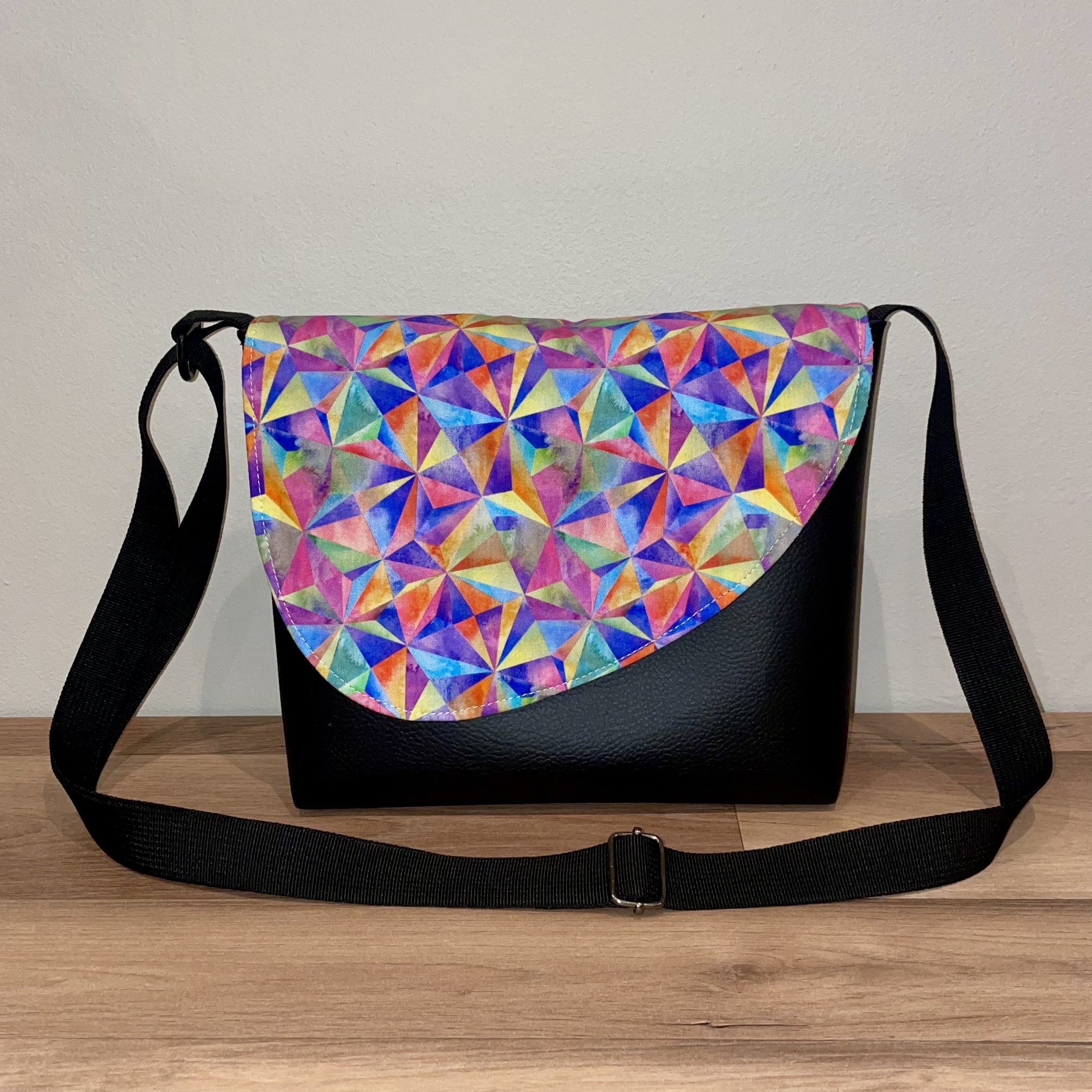 – Sac à main en similicuir noir.